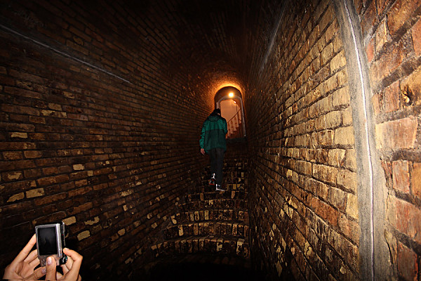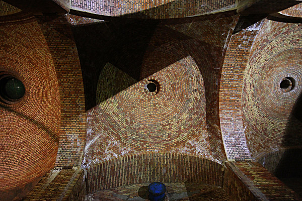 Two underground reservoirs were built between 1869 and 1871 with a capacity of 10,800 m3 each, so the reservoirs were able to store 21,600 m3 water. Though at that time the water consumption of Pest was estimated at 1,850 m3 per day, Lindley planned the waterworks, pipeline and reservoirs for a daily capacity of 9,100 m3/day. The reservoirs were built by masons from Italy; the bricks were produced in Hungary. The bottoms of the reservoirs are at 33.88m from Danube reference level, the overflow drains at 41.88m.