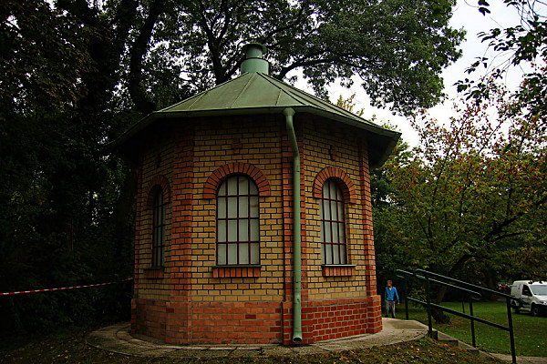 In 1867 the City Council decided to establish a temporary waterworks to satisfy the water needs of Pest. William Lindley architect from London was assigned in 1868 to build the waterworks and reservoirs. Constructions works started in April and finished in November. The temporary waterworks was built on the estate of the current Kossuth-tér and Parliament Building. The reservoirs were built in Kőbánya (10th district of Budapest) on the Óhegy hill.